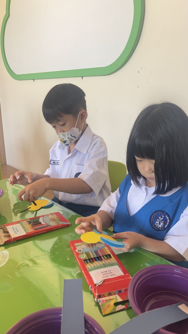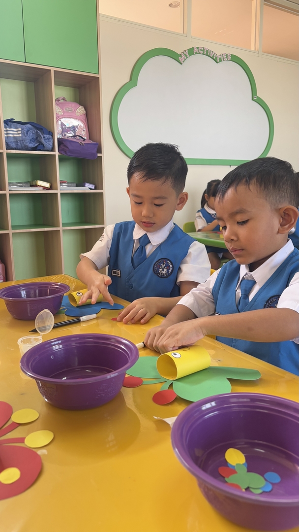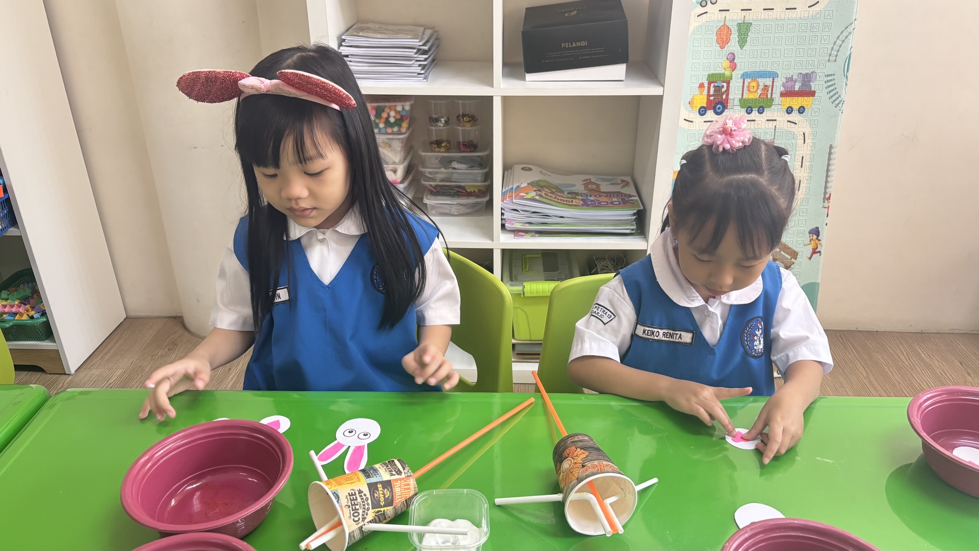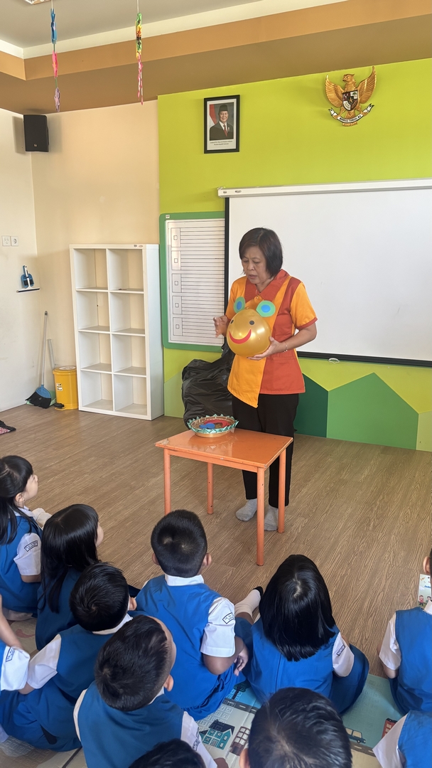 Hari pertama ini, kami juga membuat boneka balon yang sangat lucu. Setiap anak boleh memilih warna sesuai kesukaannya. Kami menghias balon, memberi mata, telinga, dan mulut. Setelah sekian lama tidak menggunakan lem, hari ini aku membuat hasil karya menggunakan lem. Pada akhir kegiatan, kami foto bersama sambil memegang balon hasil karya kami. Aku sangat bersukacita sekali. Di hari kedua, aku dan teman-teman mengenal locker masing-masing dan guru menjelaskan aturan kelas yang harus ditaati, kemudian kami membuat karya wayang burung. Pada hari ketiga, aku dan teman-teman berkeliling mengenal ruangan kelas lainnya. Tidak terasa, kami mengelilingi lingkungan sekolah dengan senang. Setelah itu, kami membuat flower craft. Aku sangat excited saat guru menunjukkan cara membuatnya dan hasilnya begitu indah. Selanjutnya, hari keempat, aku dan teman-teman membuat kelompok untuk bermain bola. Di permainan tersebut, aku belajar untuk tetap bersukacita saat menang maupun kalah. Aku dan teman-teman juga membuat karya peek a boo rabbit. Pada hari kelima, kami membuat animal candy craft. Kami menghiasnya dengan penuh semangat.