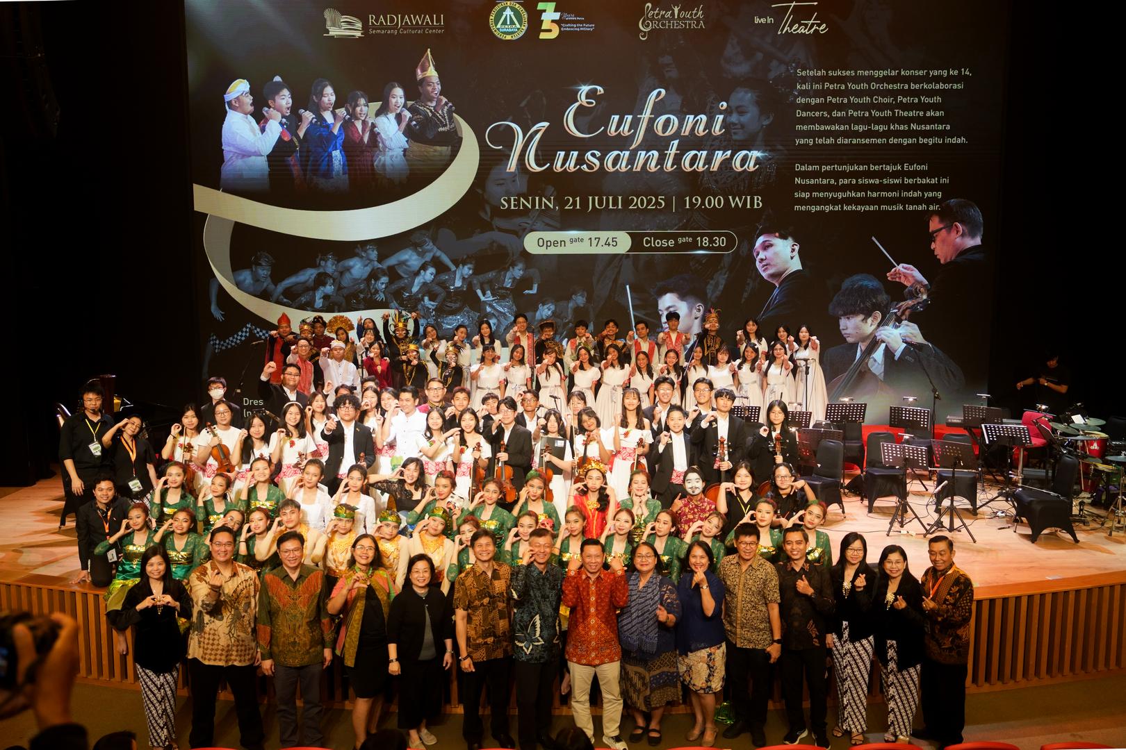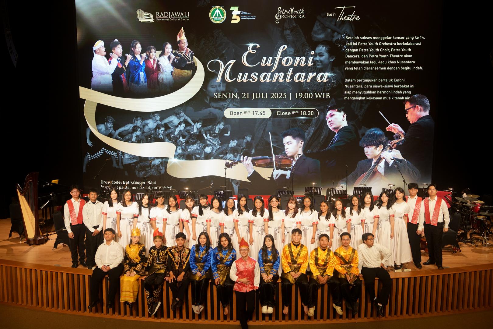 Petra Youth Orchestra (PYO) kembali menorehkan catatan manisnya dengan menggelar konser bertajuk “Eufoni Nusantara Goes to Radjawali SCC” di Radjawali Semarang Cultural Center (SCC), salah satu panggung pertunjukan seni yang cukup bergengsi di Indonesia. Konser yang berlangsung pada tanggal 21 Juli 2025, pukul 18.30–20.00 WIB ini, menghadirkan kolaborasi spektakuler antara Petra Youth Orchestra (PYO), Petra Youth Choir (PYC), Petra Youth Dancers (PYD), serta Petra Youth Theater (PYT).