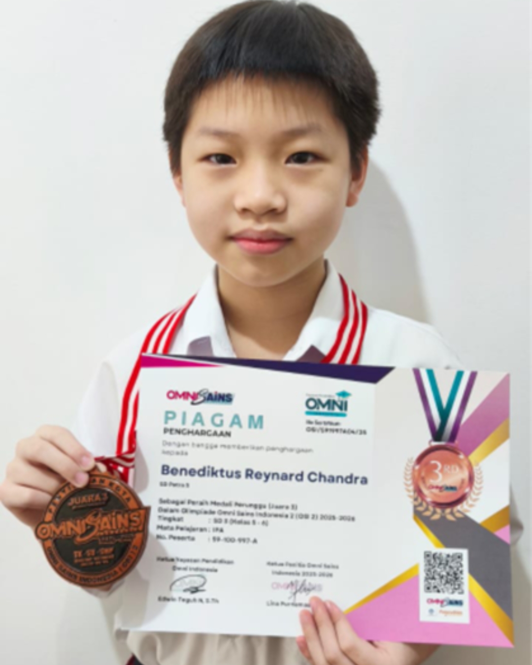 Ada tiga teman kami yang berhasil meraih prestasi di level nasional. Pertama, ada Benediktus Reynard Chandra yang berhasil meraih prestasi di bidang akademik dengan raihan Juara III Olimpiade Omni Sains Indonesia 2 yang diselenggarakan oleh Yayasan Pendidikan Omni Indonesia. Kemudian, dilanjutkan dengan prestasi nonakademik oleh Jeslyn Cornelia dan Georgina Cornelia, yang keduanya sama-sama meraih Juara I Diamond Award dalam lomba A Piano Concerto Series (APCS). Tidak hanya itu saja, Githa Lomantoro juga berhasil meraih Juara III Hongkong International Youth Performance Arts Festival and Music Competition (HKYPA). Wah, keren banget mereka… bisa meraih prestasi-prestasi di level atas seperti itu!