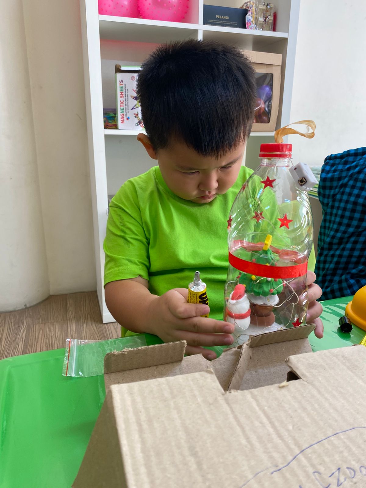 Di kelas TK B, para siswa berubah menjadi penemu kecil. Dengan bahan-bahan bekas seperti botol plastik, kardus, kertas sisa, tutup botol, pita bekas, sendok plastik, kami diminta membuat hiasan Natal paling unik! Ada yang membuat kandang Natal dari kardus, lonceng dari botol kecil, hiasan bola Natal dari kertas gulung, atau bahkan kereta mini Santa dari rak telur. Semua bangga dengan hasil karya masing-masing. Lomba ini mengajarkan bahwa barang bekas pun bisa dijadikan sesuatu yang indah dan bermakna.