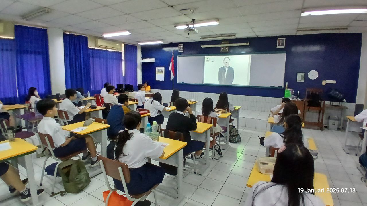 Berbeda dengan upacara bendera biasa, peringatan HSKI kali ini terasa lebih intim dan khidmat. Seluruh rangkaian kegiatan dilaksanakan secara serentak melalui Radio Sekolah. Metode ini memungkinkan seluruh siswa, Bapak/Ibu guru, serta karyawan untuk mengikuti ibadah dari kelas masing-masing tanpa mengurangi rasa kebersamaan.