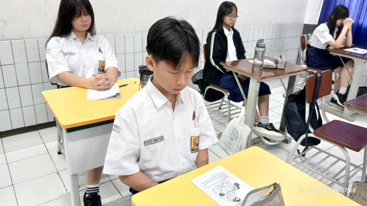 Suasana pagi itu diawali dengan semangat yang luar biasa. Kegiatan dibuka dengan pujian dan doa pembuka yang dibawakan oleh teman-teman dari Tim Persekutuan Doa (PD). Suara puji-pujian yang bergema dari pengeras suara di setiap kelas mengajak seluruh warga sekolah untuk menaikkan syukur kepada Tuhan atas penyertaan-Nya bagi sekolah-sekolah Kristen di Indonesia.