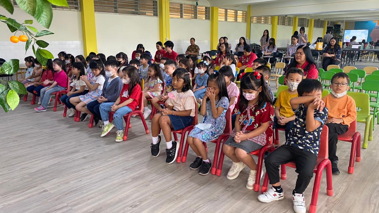 Kegiatan kemudian ditutup dengan doa bersama, mengakhiri rangkaian ibadah dengan penuh damai dan sukacita. Melalui kegiatan ini, para kakak-kakak dari SMA Kristen Petra 2 pun belajar untuk terbiasa berbagi berkat Tuhan melalui firman, lagu, dan aktivitas yang mereka bawakan. Di sisi lain, adik-adik TK mendapatkan pengalaman rohani yang menyenangkan sekaligus membangun iman mereka sejak usia dini.Kegiatan ini menjadi bukti bahwa perbedaan usia bukanlah penghalang untuk saling melayani dan bertumbuh bersama. Dalam kebersamaan lintas generasi, kasih Tuhan dinyatakan dengan cara yang sederhana, hangat, dan penuh makna.