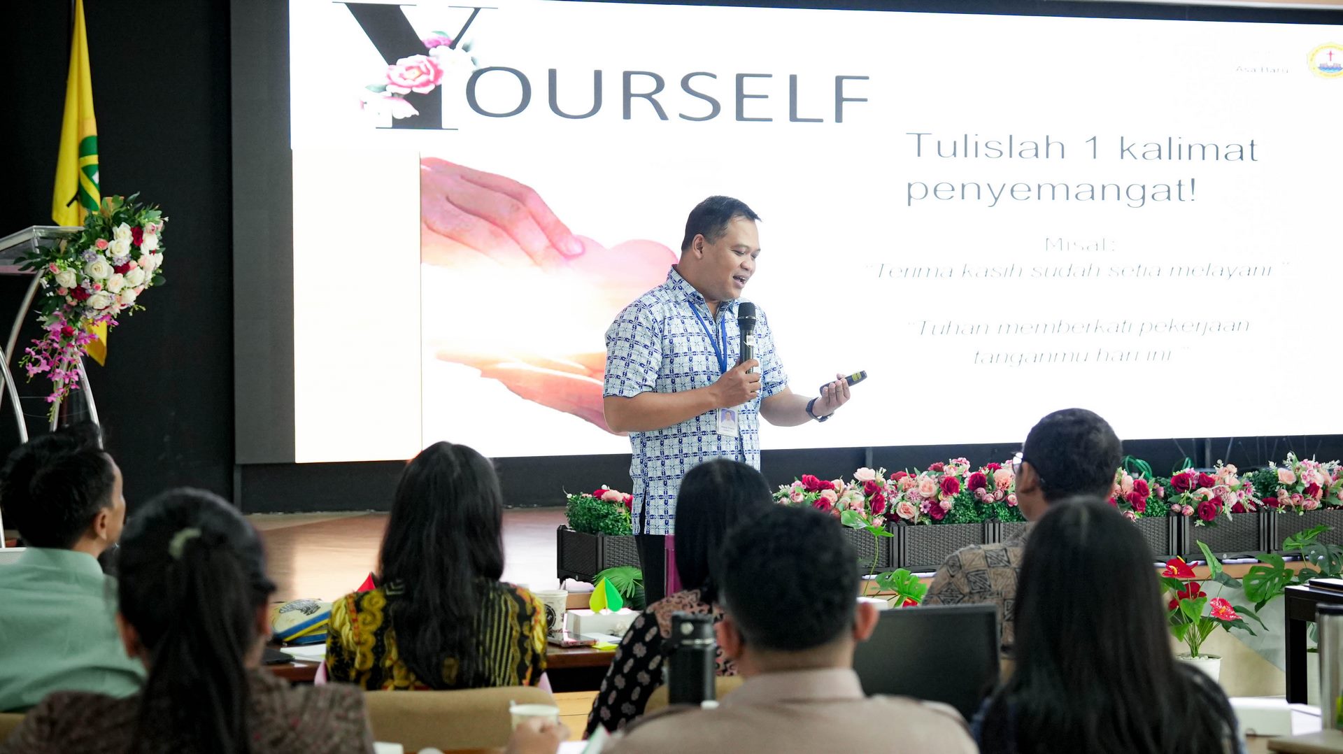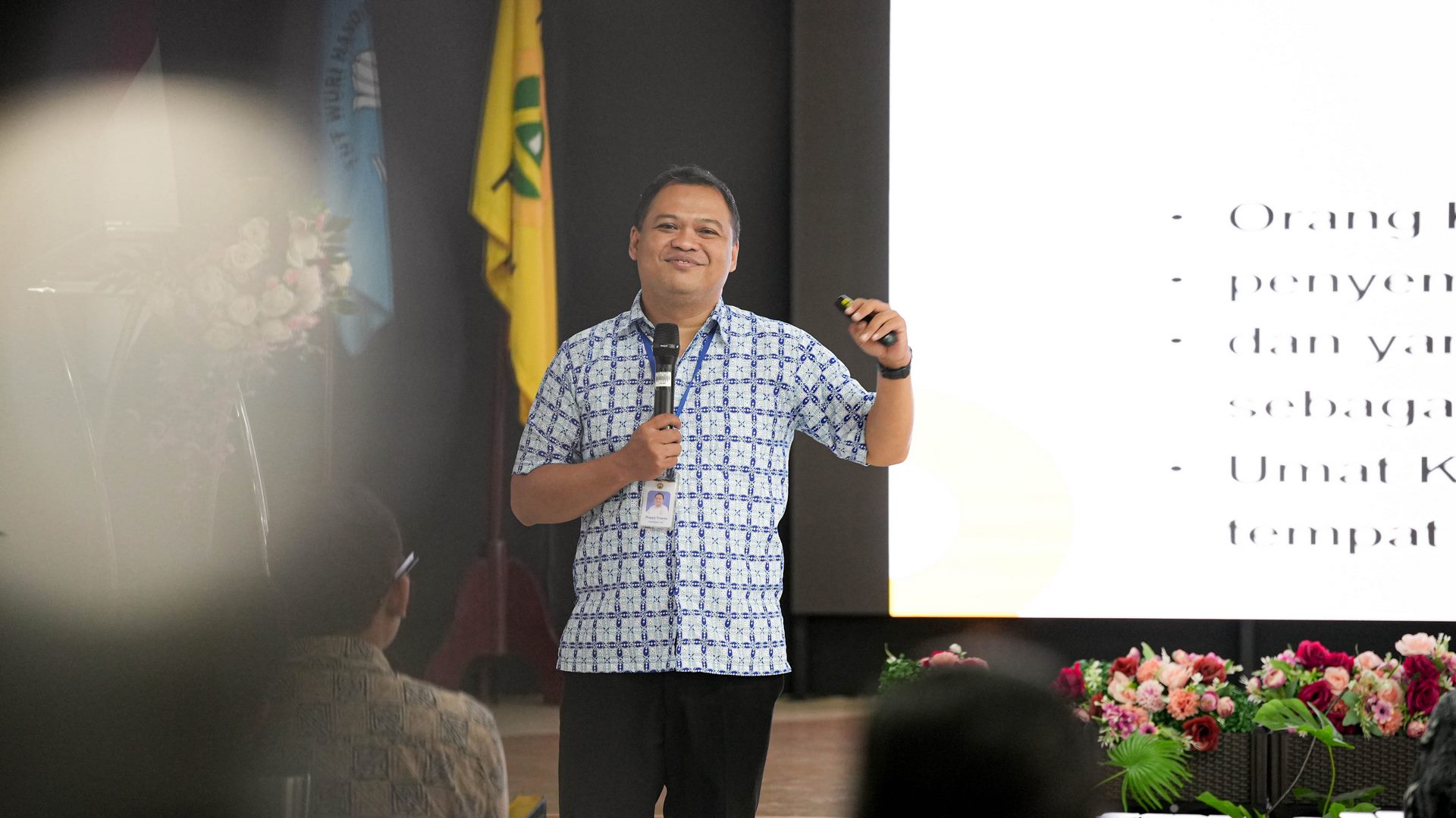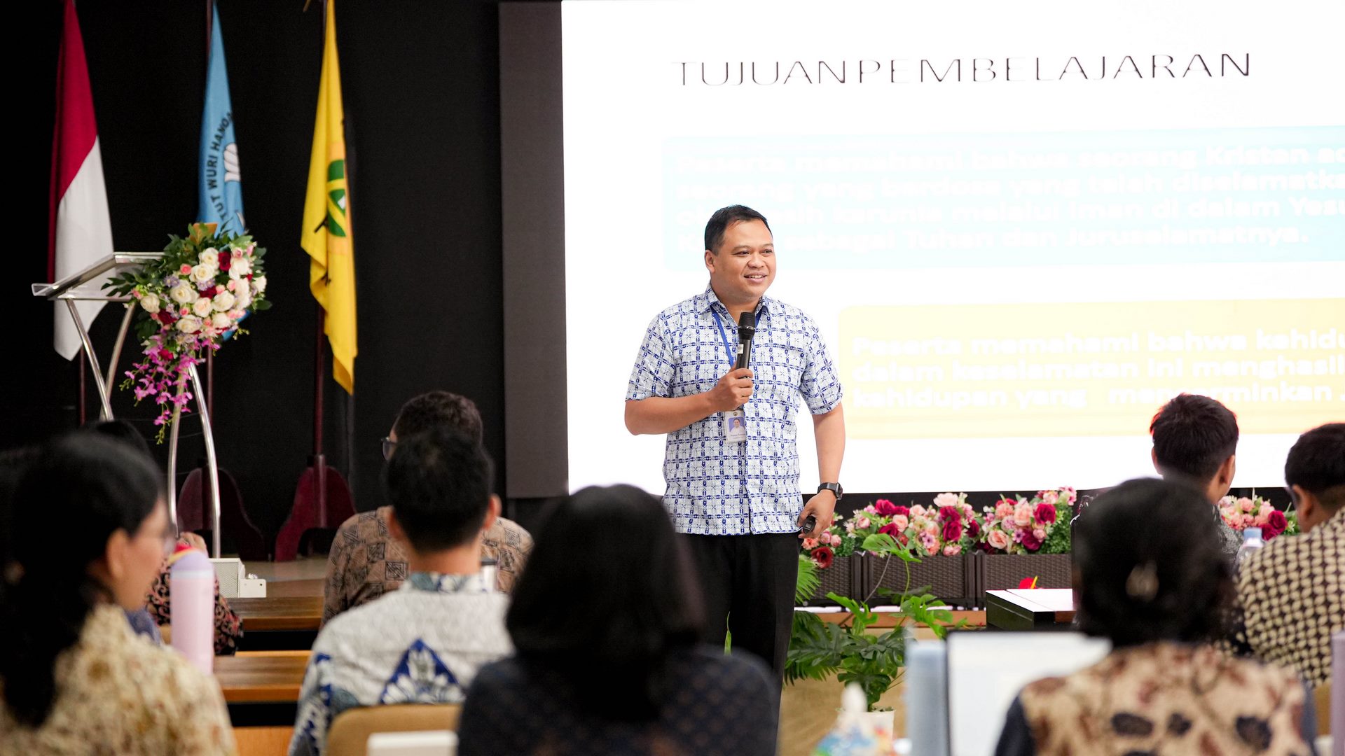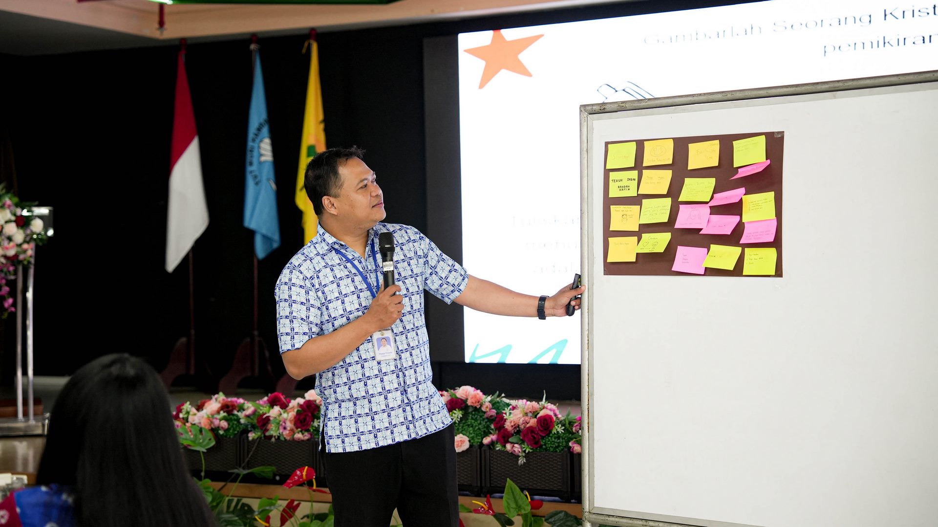 Bapak Happy Triarta, M.Min. memandu topik “Apakah Arti Menjadi Orang Kristen?”. Sesi ini dirancang agar guru tidak terjebak pada “Kristen tradisi”, melainkan memiliki perjumpaan pribadi dengan Kristus. Bapak Happy menekankan tiga langkah praktis bagi guru: menjaga relasi intim melalui saat teduh, menjadi duta kasih dalam keseharian sekolah, dan menjadi role model yang konsisten. Beliau bersyukur melihat para guru berani berefleksi secara jujur mengenai kekurangan mereka selama ini.