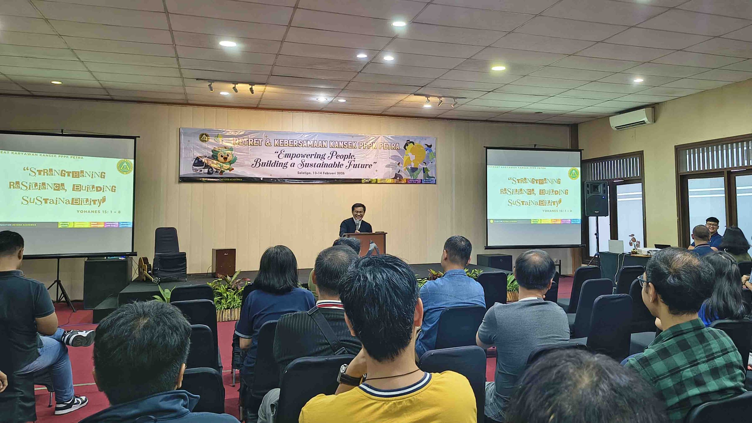 Memasuki sore hari, Bapak Yerymia membawa peserta menyelami sisi batin melalui tema “Strengthening Resilience, Building Sustainability”. Ia membuka sesi dengan realitas jujur bahwa di Petra, bekerja dan pelayanan adalah satu. Namun, penyatuan ini sering menciptakan beban ganda yang menguras batin.