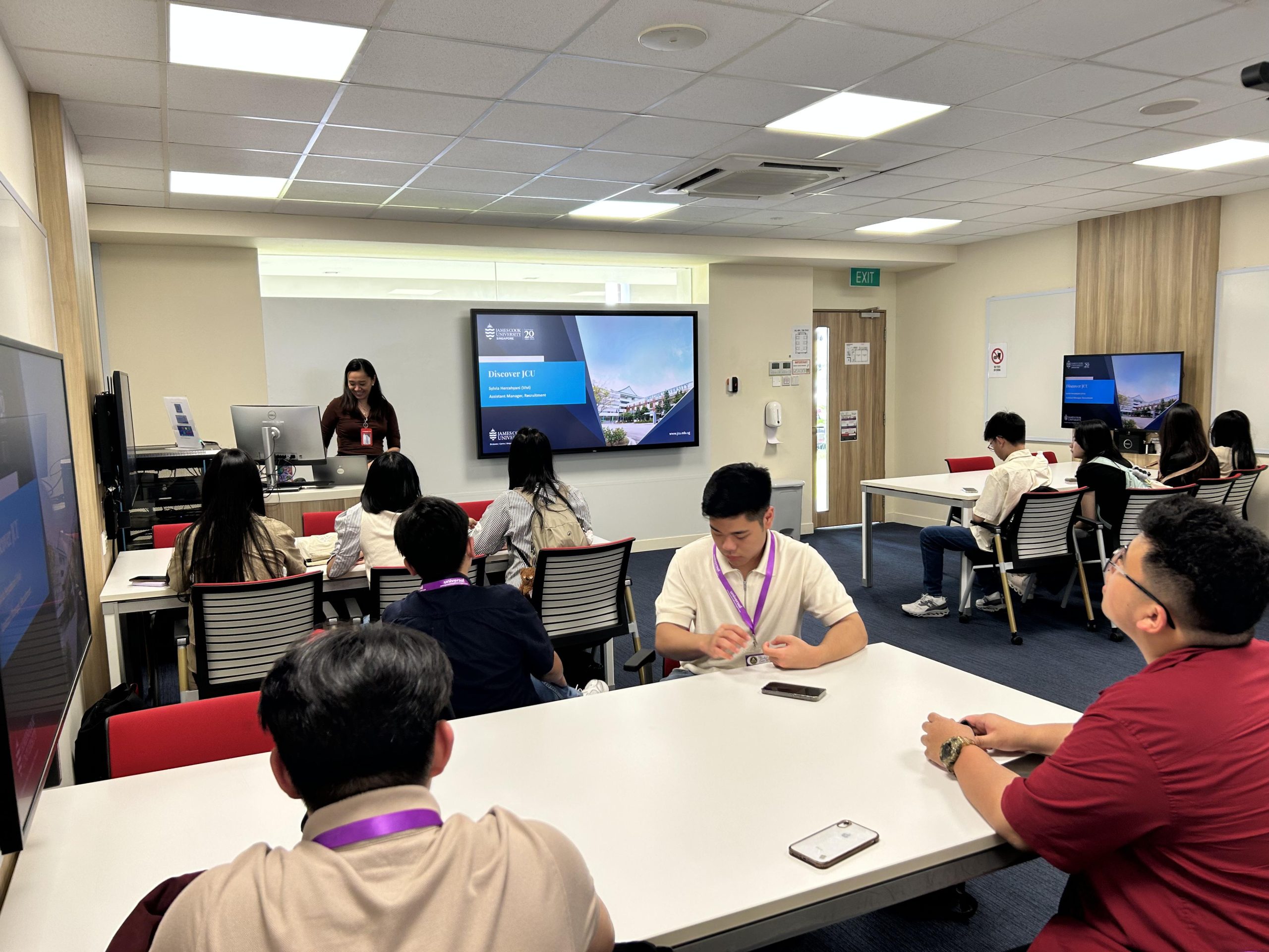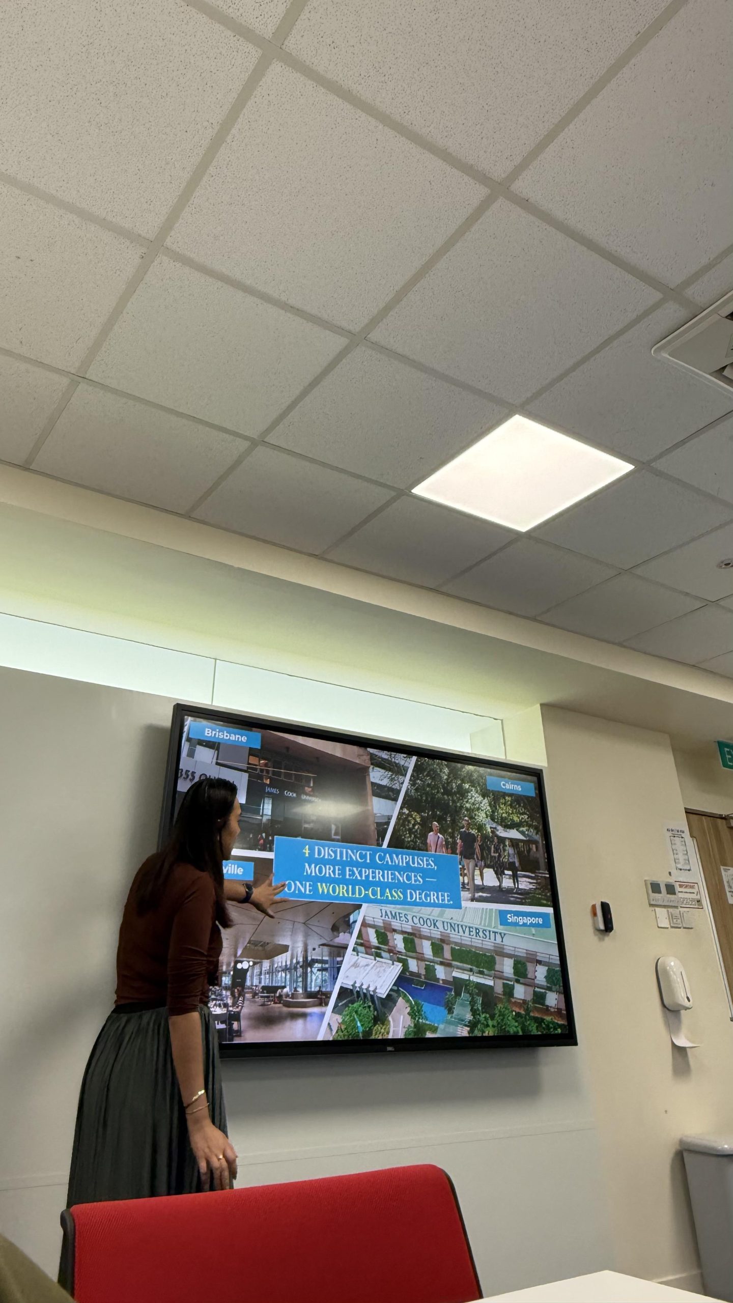 Then we continued to James Cook University Singapore for another campus tour + career talk 🏫✨. The talk gave us more insight about study options and what kind of career paths students can go into. Plus, seeing another campus again really showed us how every university has its own vibe—some feel more business-y, some more international, some more modern—jadi kayak kita lagi “compare and choose” in real life 😭📌